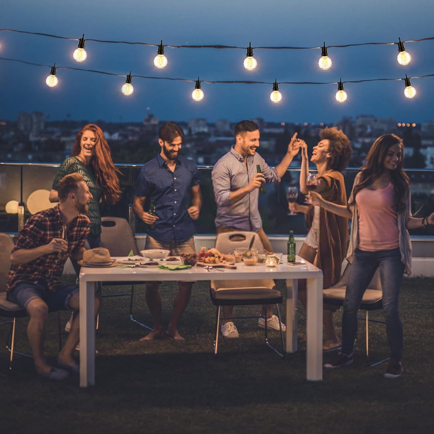 Outdoor String Lights, 40ft long patio string lights with 25 suspended sockets